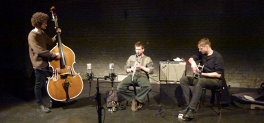 [..] Die drei Musiker wirken allesamt in den verschiedensten Formationen der frei improvisierenden Szene, gehören zu gefragten Vertretern des Genres, und zum ersten Mal standen sie nun gemeinsam auf einer Bühne: Zu Anfang vermeinte man dort noch Solitäre auszumachen, in sich versunkene, hoch konzentrierte Musiker mit geschlossenen Augen.