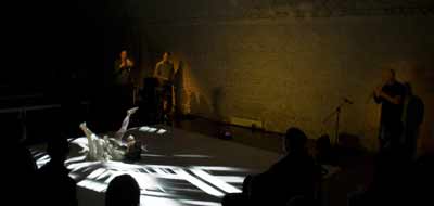 Erweitern Sie Ihre Konzertwahrnehmung in andere Dimensionen: Die optische Komponente der Vorfeldschen Licht-Installation ist hier die offensichtlichste. Die mathematisch-naturwissenschaftlichen Studien von Jaap Blonk zählen ebenso dazu wie das erweiterte Saxofon von Dirk Marwedel (er ist auch Steinbildhauer).